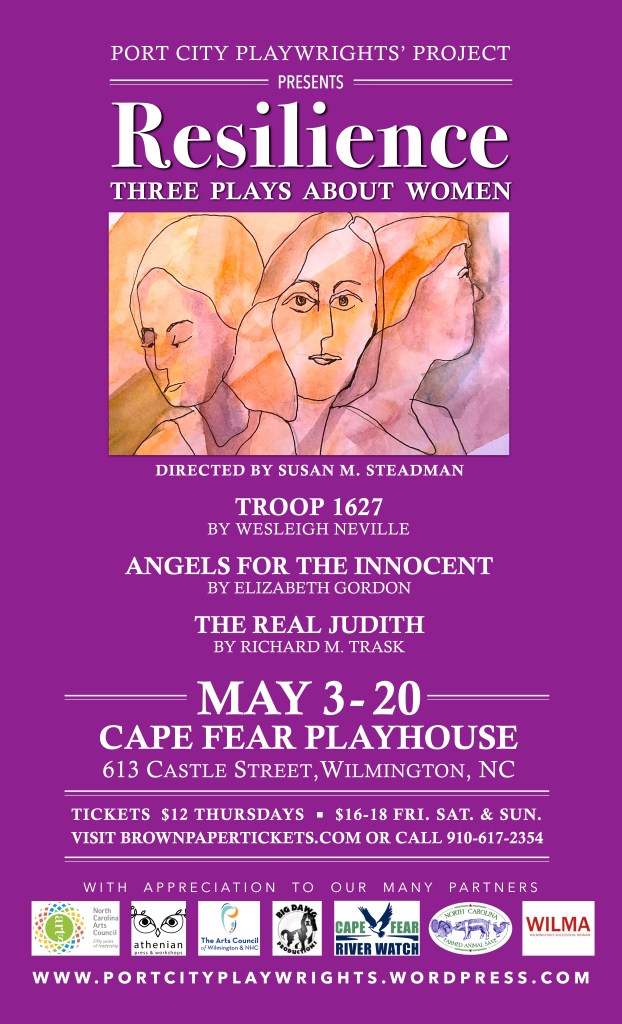 Encore described the “three terrific tales” as “memorable,” and summarized the show as “a powerful evening of theatre that explores the human experience from many different perspectives.” Full review here. According to the Star News, Neville’s play made “a forceful point about how traumatic events stay with us”; Gordon’s play provided a “thoughtful overview of the issues surrounding animal rights”; and Trask’s comedy conveyed its “theme of female empowerment while ending ‘Resilience’ on an upbeat note.” Full review here.