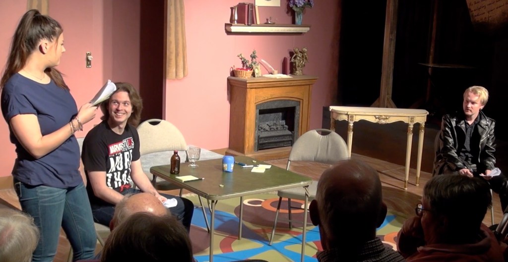 Kayla Hager directed three plays: Richard M. Trask‘s The Lake-ness Monster, starring Elizabeth Michaels and John D’Amato; Joshua Drew‘s Paranoia, starring Jeremy Weir, Allen Crowell Jackson, Joe Renton, and Clifton Ballard; and Patrick Raynor’s Play on, POTUS! starring Patrick Raynor, Cat Thomas, and Joshua Lowry.