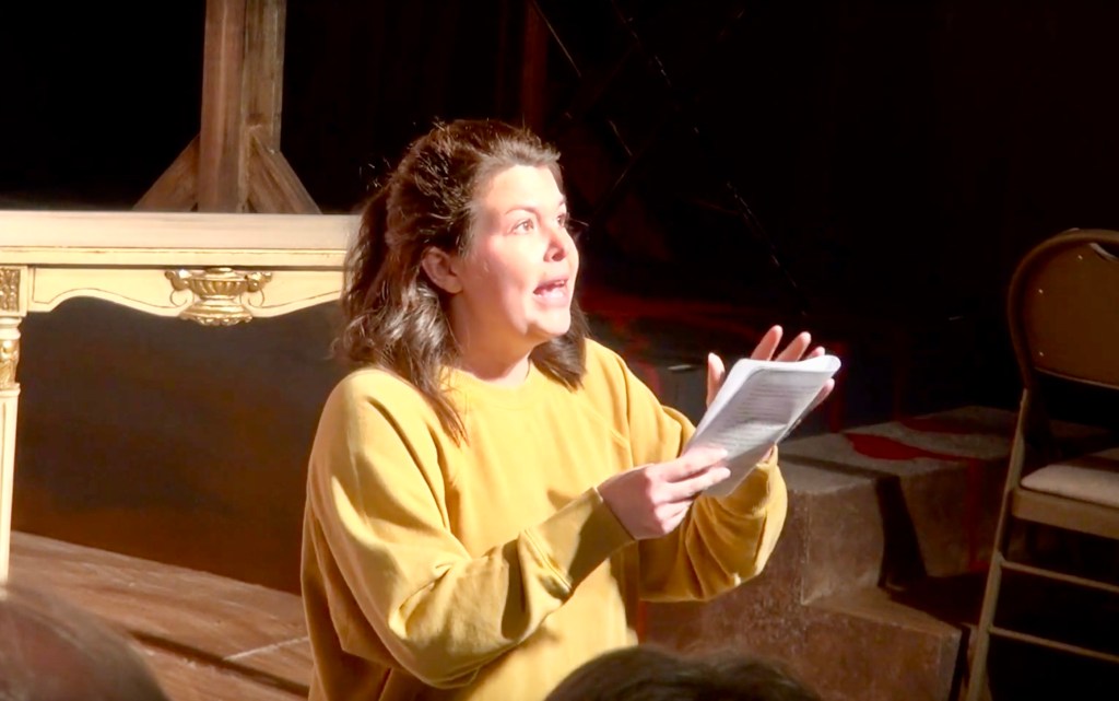 Rose-Mary Harrington directs her own script The Wedding Dress, a play in verse in which a pair of Jewish women meet for the first time—at the platform on a train to Auschwitz concentration camp.